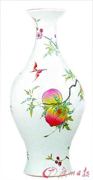 | 雍正粉彩寿桃蝙蝠纹橄榄瓶 |