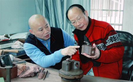 为弘扬陶都宜兴800年紫砂文化,展示当今紫砂艺术最新成果,迎接祖国60年华诞,由中国工艺美术大师吕尧臣、江苏省工艺美术大师吕俊杰父子二人首度合作的《吕氏阴阳太极壶》历经4年日前在宜兴问世!