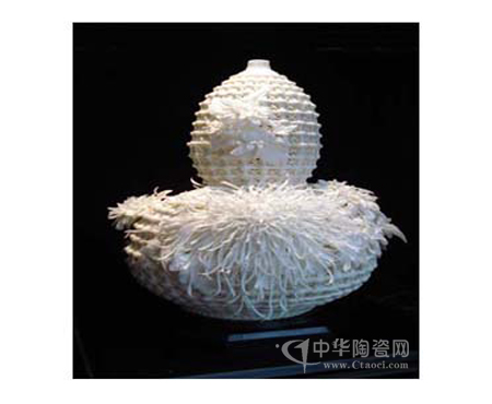 《菊有风华》高12寸,洁白无瑕的镂空葫芦瓶上,缠绕着怒放的不同种类的菊花,朵朵雪白的菊花争芳斗艳,释放着生命的风华。作品采用德化特有的如脂似玉的白瓷,精雕细刻成型,每一个细节的处理均透出一份精致。镂空的葫芦瓶以仿藤编的形式,手编而成,象征着吉祥、福气,菊花的风华也象征着朝气、兴旺,葫芦与菊花的结合更是福财兴旺的象征,是礼品的最佳选择。