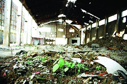 关闭的陶瓷厂内长出的植物。陶瓷厂从停止生产到拆除,经过了很长一段时间