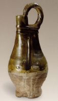 说 明: 壶体呈包裹状,淡红陶胎,胎质坚硬.上白色化妆土,施褐绿色釉.