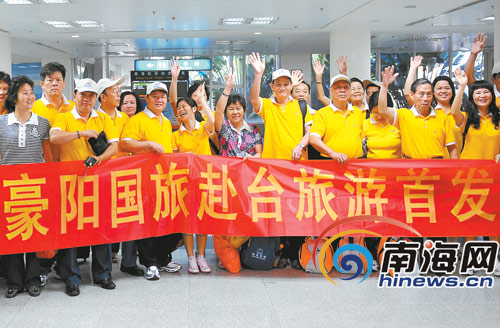 (本报台北5月2日电)5月2日,我省首个赴台旅游团队海口启程。本报记者王凯通讯员王涛摄
