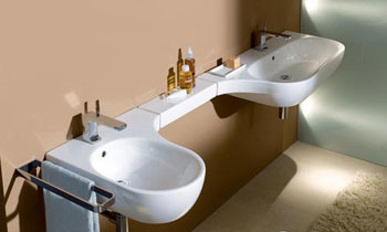适用于空间较大的装饰较高档的卫生间使用,台面可采用大理石或花岗石材料。