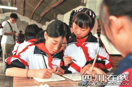 昨日上午,一场名为《自然、绿色、爱》的陶瓷壁画创作活动在成都市新都区三河街道的一家陶瓷艺术村举行。来自都江堰向峨小学的近20名同学和成都川大附小、行知小学等学校的同学们一道,在上百件陶瓷艺术砖上绘制了主题画作。这批艺术砖经过烤制后,将和美国肯塔基的小学生们绘制的陶瓷艺术砖一起拼成一组陶瓷壁画,在都江堰向峨小学的艺术墙上展示。