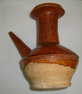 记者看到,捐赠的外销瓷器有军持、小口瓶、粉盒、碗等。釉色有青釉、青白釉、白釉、酱釉等。器物造型小巧,制作精致。其中宋磁灶窑酱黄釉军持非常吸引眼球。它的口径6厘米、底径6.8厘米、高14.5厘米,盘口长颈扁圆腹平底,腹部一边附一长流,造型高大雄浑,端庄稳重,器物周身施酱黄釉,腹底及圈足无釉。器表为素面无任何装饰,砖红色胎,开片不明显。