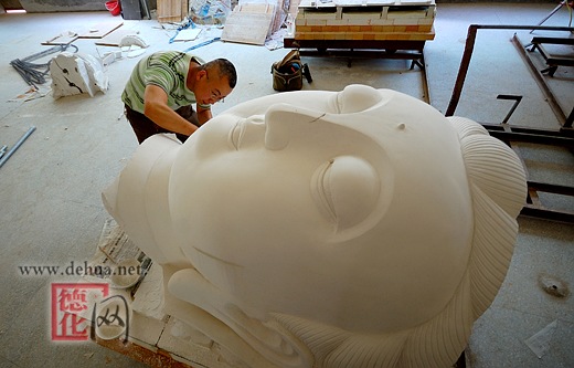 如此“浩大”的工程对创作者来说“意想不到”的事情还是太多了。苏清河说,大型瓷雕能否烧制成功还得看难度最大的头部烧制情况呢。高大的坯体,成型时就费了创作人员的不少心思,脸部是一块完整的坯体,是不能拼凑的,“头颅”雕制时内部用不锈钢架支撑,并结合最先进的建筑“干挂”技术,以防热胀冷缩时开裂。烧制环节更是困难重重,烧制时不可预测的因素很多,弄不好观音的脸部就会“面目全非”。