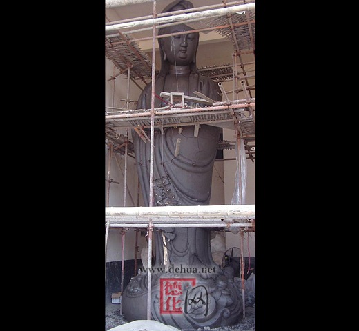 图为瓷都广场主题雕塑——巨型陶瓷“渡海观音”已经开始安装调试