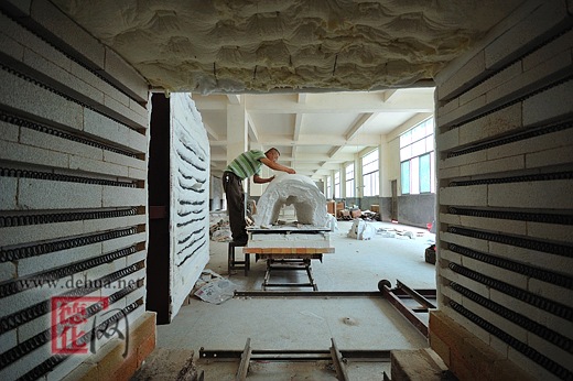 据了解,“渡海观音”烧成后高达6.4米,由国家级工艺美术大师苏清河领衔打造。2008年10月,在采访这位瓷雕大师时,笔者在鹏祥工业区大型瓷雕“渡海观音”的烧成车间里看到,地板上摆放着无数块状的坯体,两座电脑自动控温的电窑正进行坯体烧制。