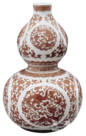 清乾隆 釉里红团螭龙纹葫芦瓶