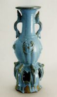 图片名称: 钧窑天蓝釉帖花兽面纹螭耳连座瓶