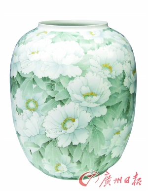 陈扬龙:是的,当时的作品材质较差,含铁量高,燃料又是煤或柴,因此色彩比较沉着,看上去古香古色。现在的醴陵釉下彩制作起来可就讲究了:材质的含铁量用科学的方法尽量减少,釉料多是始熔温度较高、表面张力较大的长石釉,颜料发色更稳定,比传统的石灰釉白度更高,釉下色料的艳度也有了明显提高,装饰效果更加清新明快了,烧制的温度也由原来的1250℃提高到了1400℃,瓷质更好了,坯体也比以前更薄更均匀了。