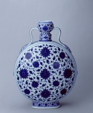 这是一件清代乾隆时期景德镇御窑厂烧造的宫廷用瓷,其造型、纹饰皆源于明代永乐、宣德时期的官窑青花瓷器,表现了乾隆时期在陶瓷器皿制作方面尚古之风的兴盛。