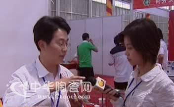 图为辽宁省卫视 视频截图 (左:中华陶瓷网业务经理 赖成义 右辽宁省卫视记者)