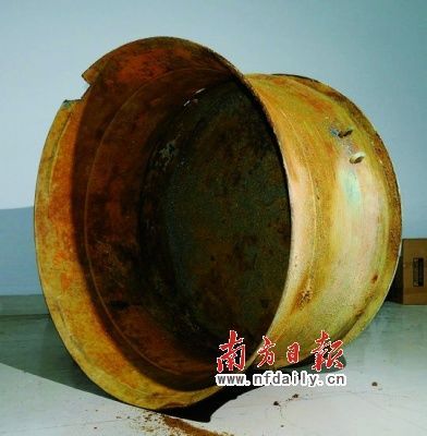 2009年4月13日,广东省阳江市大八镇周亨村发现的古代铜鼓。
