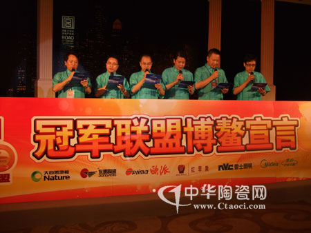 在6月14日的晚宴上,“冠军联盟”第一次集体高调地在地产行业亮相,并集体宣读《冠军联盟博鳌宣言》,承诺带动各自行业发展,推进原创设计,倡导发展与环保并进,合力打造一体化解决方案。