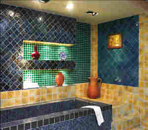 卫生间的面积虽然不大,但每天的使用率极高,消费者愈来愈注重卫生间的装饰风格及实用性。环渤海建材中心相关负责人介绍,卫生间应根据明厕和暗厕来选择仿古砖的色彩和风格,例如明厕的卫生间通风性好,采光明亮,可选择颜色较丰富或花色浓重的仿古砖;而暗厕则要选择颜色较亮的,例如白色亚光、米黄等,使卫生间整体亮堂很多,再配以少量的花片作为点缀,用颜色较暗的腰线作为空间划分,增强了空间的立体感。