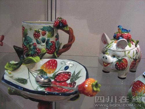 来自景德镇的全美设计第一---布鲁环保彩绘陶瓷(Blue Sky)设计生动活泼、色彩艳丽、工艺精美,各种花卉植物、动物昆虫造型大多出自英国皇室御用设计师。Blue Sky 公司是全美十大礼品公司之一,在中国瓷都景德镇拥有自己的美国独资工厂——景德镇布鲁瓷业。1989年首次推出动物系列,获得了全美礼品设计第一。此次他们展品中即包括获奖的动物系列陶瓷用品,产品上烧制著名英国皇室设计师签名,在兼具美观实用功能的同时还具有收藏价值。