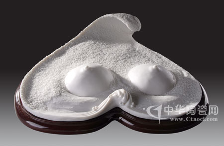 作者以抽象的艺术语言和简练的雕塑手法来表现这一主题——爱护环境,保护人类的生命源泉。作品以温润如玉的“中国白”为胎体,采用一颗心的造型,象征人类的爱心和地球的生命力息息关连,犹如大地母亲孕育人类的乳房,试想,如果大地母亲的乳汁全部被吸干,心尖也已枯萎变形,绿地产生沙化,仅剩心尖流淌的几滴水珠,是血?是泪?人类将何以生存。饱满情感蕴育于作品中,唱出了世上最美丽的声音——呼唤爱护地球!(苏晓霞)