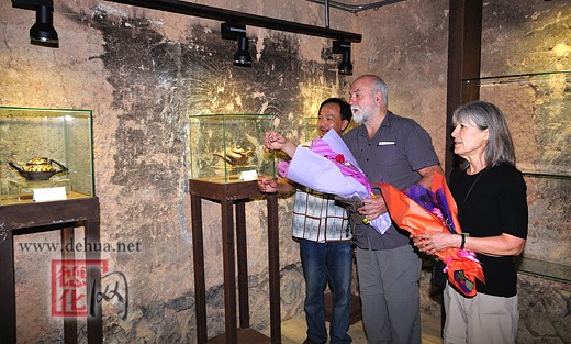7月7日,新西兰奥克兰陶瓷协会主席PTEER LANGE率领陶艺家一行到德化月记窑开展陶瓷艺术交流和创作,副县长严章瑜、文体局局长陈金殿到场迎接。