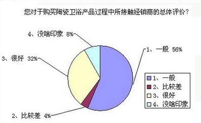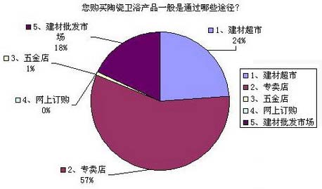 在"购买陶瓷卫浴产品的途径"选项中,57%的网友选择了去专卖店,24%的网友去建材超市,还有18%的网友选择建材批发市场,可以看出,网友更倾向于到比较专业的卖场去选购陶瓷卫浴产品,专卖店因为专业性得以脱颖而出。有业内人士也表示,应该把专卖店店面形象作为评价经销商的标准之一。