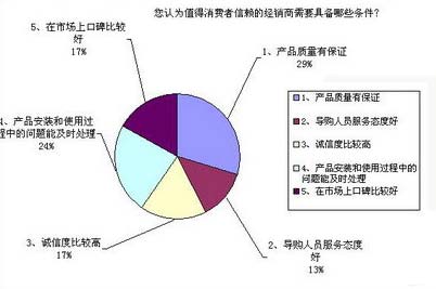 总结起来,网友们所信赖的经销商必须具备以下条件:第一,经营的产品品质有保证;第二,服务及时;第三,诚信度高,口碑好;第四,导购人员服务态度好。总的来看,都是最基本的要求。