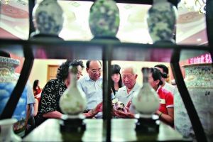 昨日,全国政协礼堂,观众在欣赏景德镇陶瓷作品。作为景德镇陶瓷艺术向新中国成立六十周年献礼之作,“江山如此多娇———新中国六十周年华诞国瓷艺术展”昨日在全国政协礼堂首展。本次展览为期30天,之后将择时在上海、香港、深圳、澳门等地陆续展出。