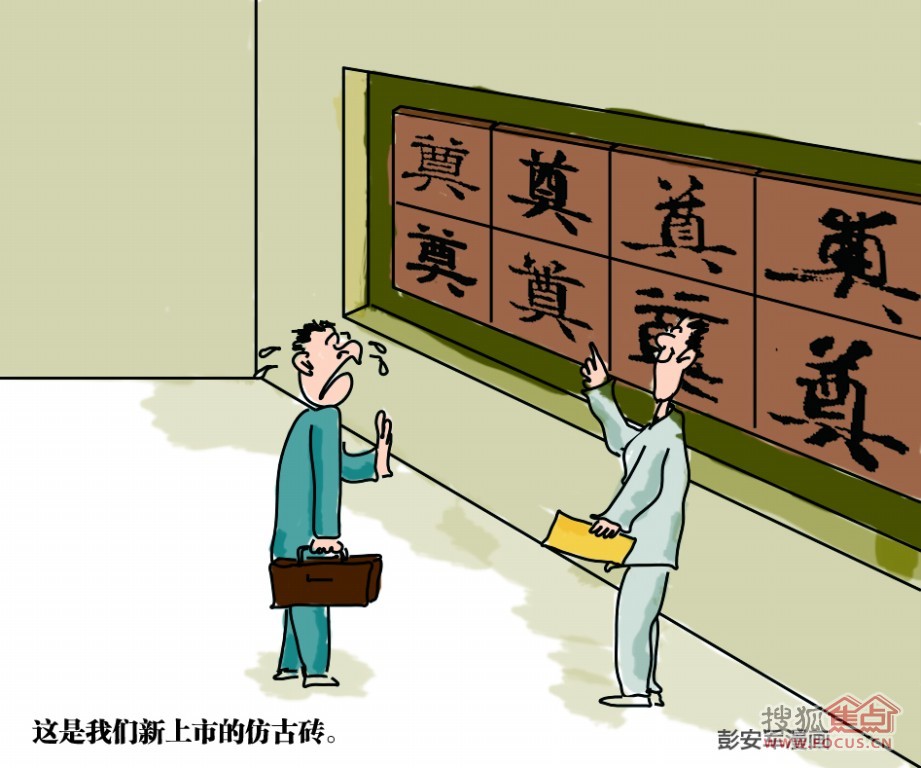 让活人买死人砖,即使在当今如此开放的世界也足以滑天下之大稽。更让人啼笑皆非的是,这一“创新”还得到行业相关协会领导的肯定,产品远销东亚等国。因为市场疲软,新奇特、充满个性化的瓷砖成了厂商抓人眼球、激活市场的法宝,各种仿竹、仿木、仿石、仿皮、仿金属的瓷砖也因此层出不穷,充满艺术和传统文化色彩的图案、文字也开始登堂入室,艺术大作、甲骨文、金文、阳文,凡是与文化、艺术挂钩的,能仿的、该仿的一个不落,而且越古老越好。