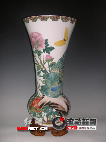 (刚刚复制出炉的株洲民间国宝“釉下五彩凤尾尊”。)
