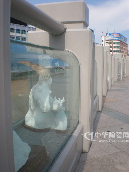 “中国瓷都?德化”的瓷都广场有条“陶瓷文化走廊”,摆设的陶瓷作品件件精美绝伦,其中一件瓷塑精品极其吸人眼球——《母子情深》。