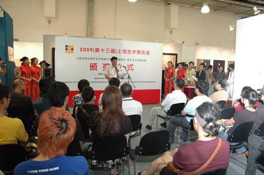 中国艺术品网2009年9月8日报道:今天晚上上海艺博会青年艺术家推介展及中国陶瓷·青年艺术家提名展颁奖仪式在世贸商城展厅举行。中华人民共和国文化部艺术司副司长张新建、上海艺术博览会组委会、东上海国际文化影视集团总裁方骏、上海艺术博览会组委会副秘书长兼办公室主任顾之骅等出席了颁奖仪式。上海艺术博览会青年艺术家推荐展在今年已举办了第四届。四年来,有一百多位青年艺术家的作品从这里展出,展示了自己艺术的新生命,创作的新旅程。