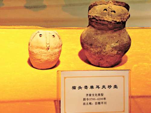 距今三千七百至四千二百年的猫头鹰单耳夹砂壶