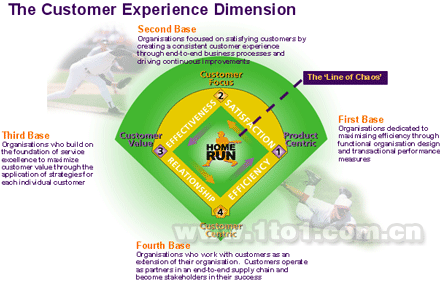 每个层次都代表企业从以产品为中心到真正的以客户为中心的道路上的一个里程碑,同时也代表着为大多数企业所忽视的客户体验维度。Round以其闻名于世的棒球模型向我们展示了这个历程。