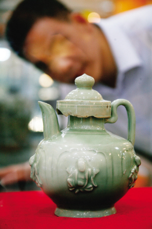 三个月里,承办方对宝安藏友发起了总动员,从“海选”到“精选”,一路走过来,承办方不得不感叹:“宝安收藏水很深”“档次高”是业内人士对这次展览的一致评价,“价值上百万的青铜器在这里不罕见,观赏石基本上十万以上,而最贵的要属价值上千万的瓷器‘汝窑天青洗’和已成‘孤品’的五代耀州窑把壶。”所谓孤品,就是只此一件,这世界上再没有同品类的藏品。