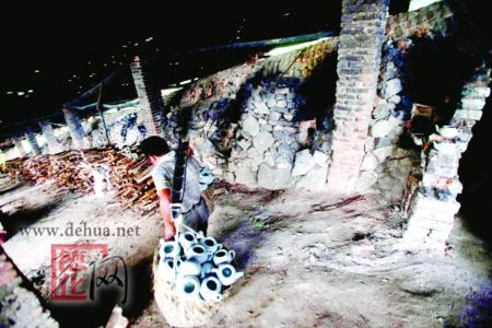 只要看到水车,就距离龙窑不远了。龙窑多依山坡或土堆倾斜而建,形状似龙,故称龙窑。在德化,已发现的古龙窑文物有200多处,可仍在使用的只有蔡径龙窑。其中一口月记窑从建成至今,400多年炉火没有断过,一直采用最原始的制瓷工艺。