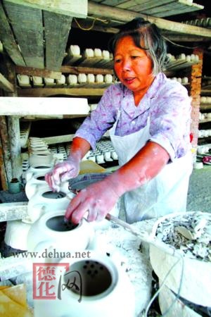 德化瓷土藏量丰富且质地优良,只要粉碎磨细,不用其他原料,就可以制胚烧制瓷器。