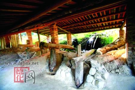 水车带动木杵将瓷土研碎,这种水车在德化留存极少
