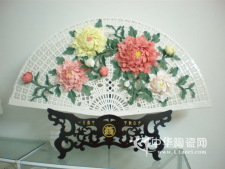 源何有制瓷扇的念头?她说:“在一次与朋友的聊天中,偶然聊到中国传统的扇,材料有竹、木、纸、扇、象牙、飞禽翎毛等,各式各样……”她突发奇想,何不做把瓷扇!想到、说到、做到,郑丽玲回家后立马行动,开始构思如何用陶瓷做扇。功夫不负有心人,经过几天的努力,第一把瓷扇终于出世。她说:“虽然自己对瓷条编织手艺非常熟悉,但用瓷条来编扇面,却不容易,坯体不能动,一被风吹,就很容易干裂,而扇面薄,裂了就难以修复。”她说时脸上洋溢的笑容可以感知她对自己作品的喜爱及背后付出的汗水。