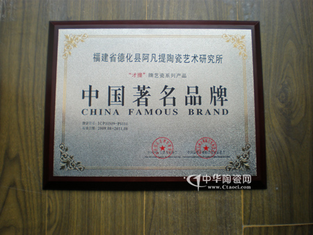 近日,福建省德化县阿凡提陶瓷艺术研究所和好瓷人家被中国国际品牌发展协会、中国品牌企业联合发展促进会授予“中国著名品牌”,成为重点推广首选单位。