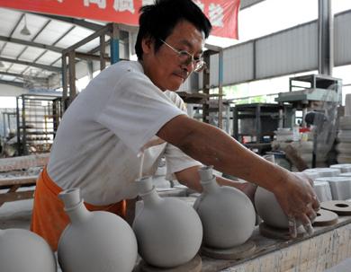 景德镇酒瓶创意工厂的员工在设计新酒瓶