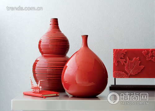 红色的八仙瓶与福寿瓶于极简的家居环境中,漆光的质感与色泽折射成为房间中的亮点。一只小小的千纸鹤将冷静的氛围变得富有生气。