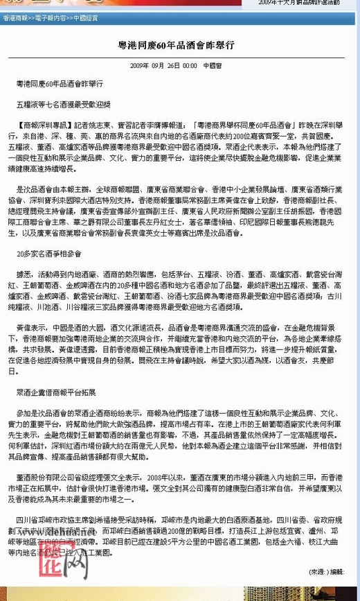 “戴云瓷台湾红”喜获粤港商界最受欢迎中国名酒[图]