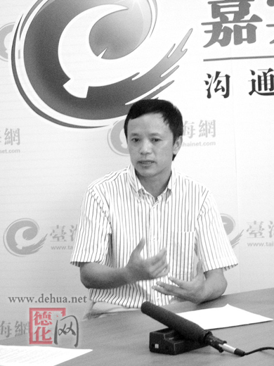 赖耀清:中共德化县委统战部副部长、德化县工商联主席。2007年4月8日,厦门德化经济文化促进会成立,赖耀清当选秘书长。图为赖耀清接受台海网专访。