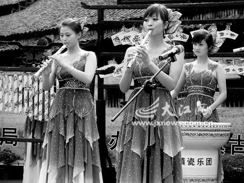 景德镇瓷乐一枝独秀,全市已成立4支瓷乐乐队。图为曾出访过20多个国家和地区的景德镇瓷乐团在镇窑复燃仪式上表演。本报记者智峰摄