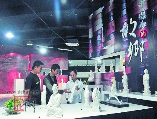 在海西旅游发展战略中,德化县着力打造海西陶瓷文化旅游精品线,深挖细掘独具特色的德化民窑文化,充分发挥陶瓷文化独特魅力,整合以陶瓷博物馆、屈斗宫古窑址、祖龙宫、龙窑、工业旅游示范点为主的陶瓷民窑文化旅游精品线。特别是努力将陶瓷工业与陶瓷文化旅游有机结合,目前全县有10多家陶瓷企业设置了传统手拉坯项目,其中鼎晟艺瓷、儒苑礼瓷正积极申报国家级工业旅游示范点。
