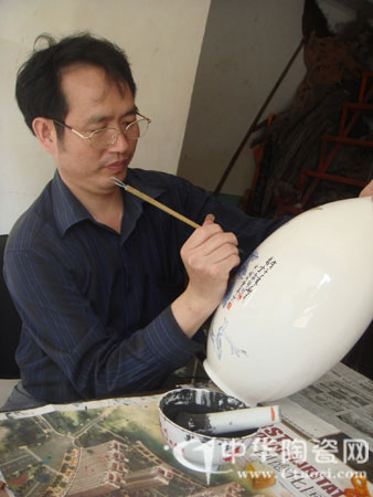 陈行一向记者介绍说,陶瓷的长相是靠彩绘装饰打扮的,白胎瓷和生坯都必须通过彩绘艺人灵巧的画笔,用色彩、纹样进行彩绘装饰,烧成后的作品才能美丽大方赏心悦目。这样的陶瓷作品既美化了人们的生活,又可以陶冶人们的情操。