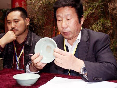 直径不到十厘米,釉面为粉青釉的一对平底小盘,十多年前被成都近郊某老农修房子时从地底下挖出并当做了烟灰缸。在充当烟灰缸很长一段时间后,又以五十元钱买给了收藏家。10月28日,这对平底小盘被送到了中国收藏家协会陶瓷收藏委员会主任荆治中手中。在仔细鉴定后荆治中肯定地表示,这对小盘为出自南宋时期的龙泉窑粉青釉,而且是龙泉窑的精品代表,“保守估计一只得值好几十万。”