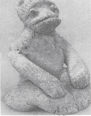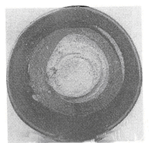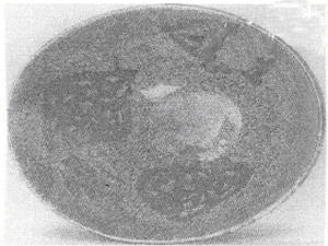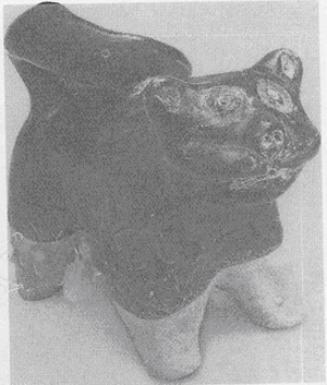 晚期仿品吸取以往经验,有埋人土中“过蚀”、在成品上涂胶过火仿土锈制造假象者。土锈靠胶粘附,干燥时无异样反应,但见水易化,甚至脱落,用手指沾水,哪怕沾点唾沫涂于锈面,手指沾有土色者为人为土锈。