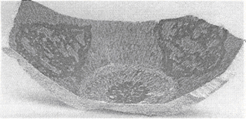 现代吉州窑仿制品,多采用淘洗好了的现成高岭土,且在封闭的室内制作,砂粒无从混人,人为掺和又极难把握比率,难使匀和。因而胎质坚密,不含砂,色泽偏白,不存在胎表因砂粒引起的阻刀、跳刀现象,更不存在因此而留下的竖条形的起伏触感和竖条状的釉面挂附不匀等釉层肌理现象。