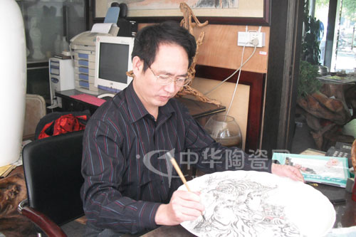 陈行一介绍说,陶瓷绘画受工艺、器型、材质等方面的制约,与宣纸相比难度要加大,要设法发掘陶瓷绘画潜在的表现力,必须结合器形进行合理的构思、布局,扬长避短,让陶瓷亮丽的材质与画面有机的结合起来,在有限的瓷器里创作出无限的境界。还介绍说,绘画讲究笔墨线条等的对比变化,例如粗细、疏密、虚实、浓淡等,从而产生线条的节奏韵律,讲究“气韵生动”、“以形写神”、“骨法用笔”,以浑然天成、本色自然、含蓄蕴藉为品位,遵循“作品妙在似与不似之间,大似为媚俗,不似为欺世”的创作原则。