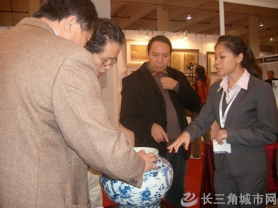工作人员解释花瓶的质地 长三角城市网 文双摄